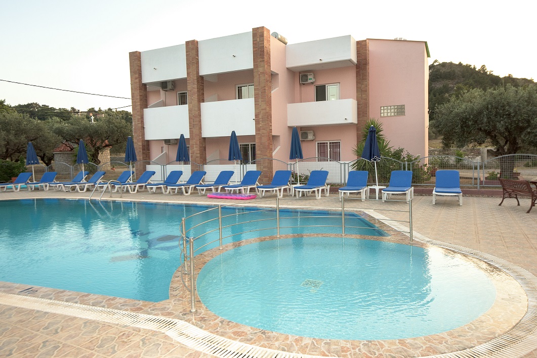Coliseum complex comprises of 8 Apartments and 16 studios set in sumptuous landscaped grounds around a large swimming pool. The pool is one of the largest in Pefkos area making it ideal for swimming. There is also a Jacuzzi and a paddling pool which is safe for children. Around the pool is a large sundeck area, with sun loungers and shades. This is complemented by a pool-bar which is open all day, serving breakfasts and brunches, along with drinks.